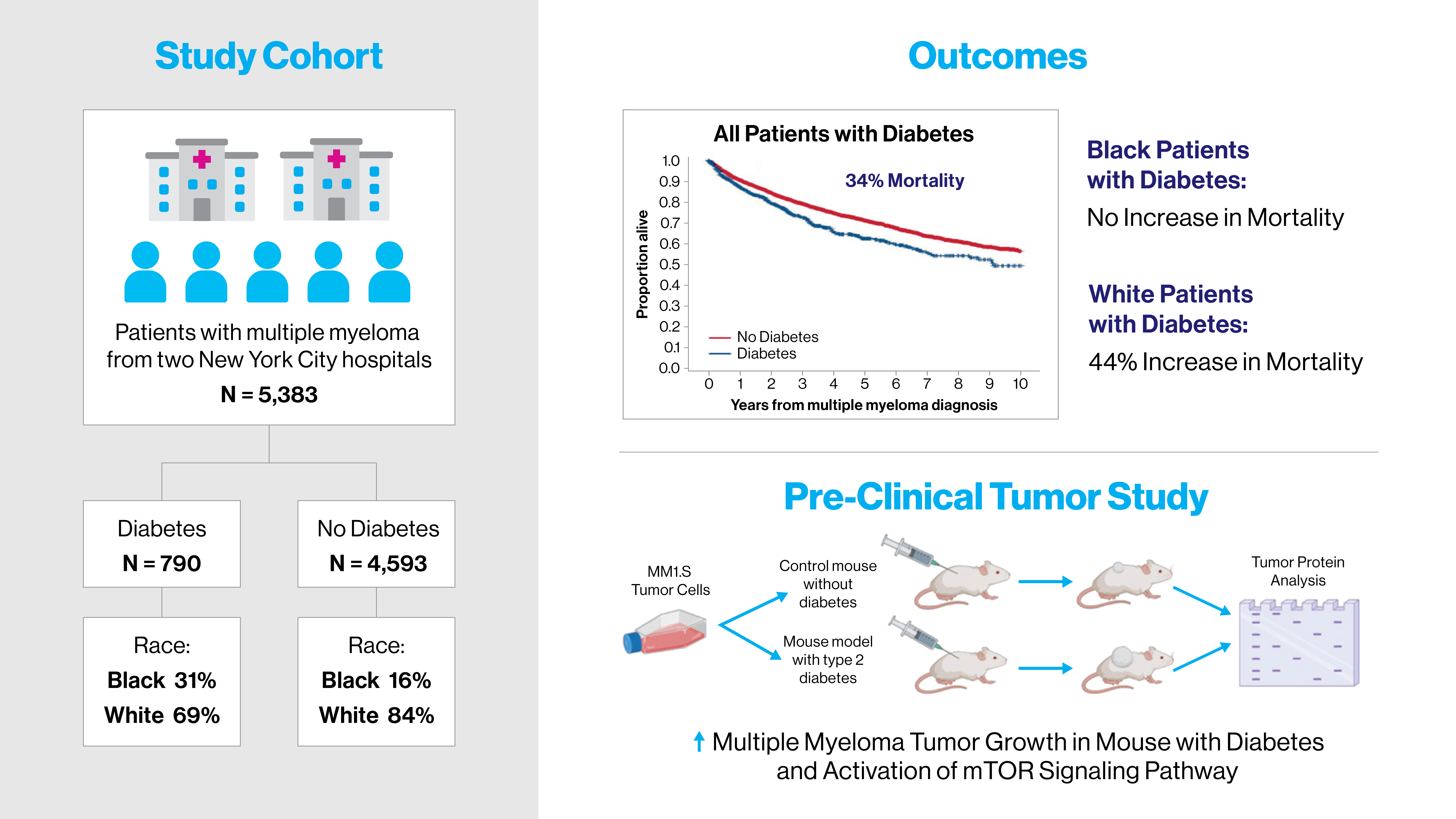 The study is the first to investigate the correlation between diabetes and multiple myeloma in the context of race and in vivo mechanisms.