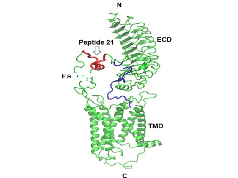 A model of the TSH receptor indicating the immunization peptide 21. HR = hinge region; ECD = extracellular domain; TMD = transmembrane domain; N and C = terminal regions