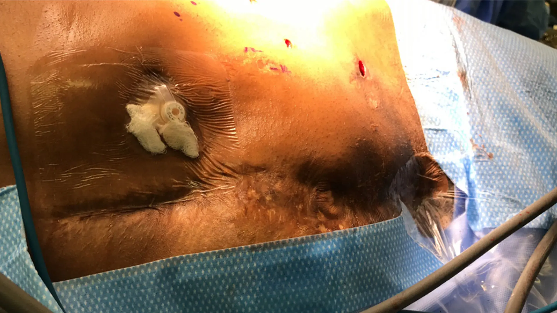 Example of extensive prior abdominal surgery where retroperitoneal approach will improve surgical outcome