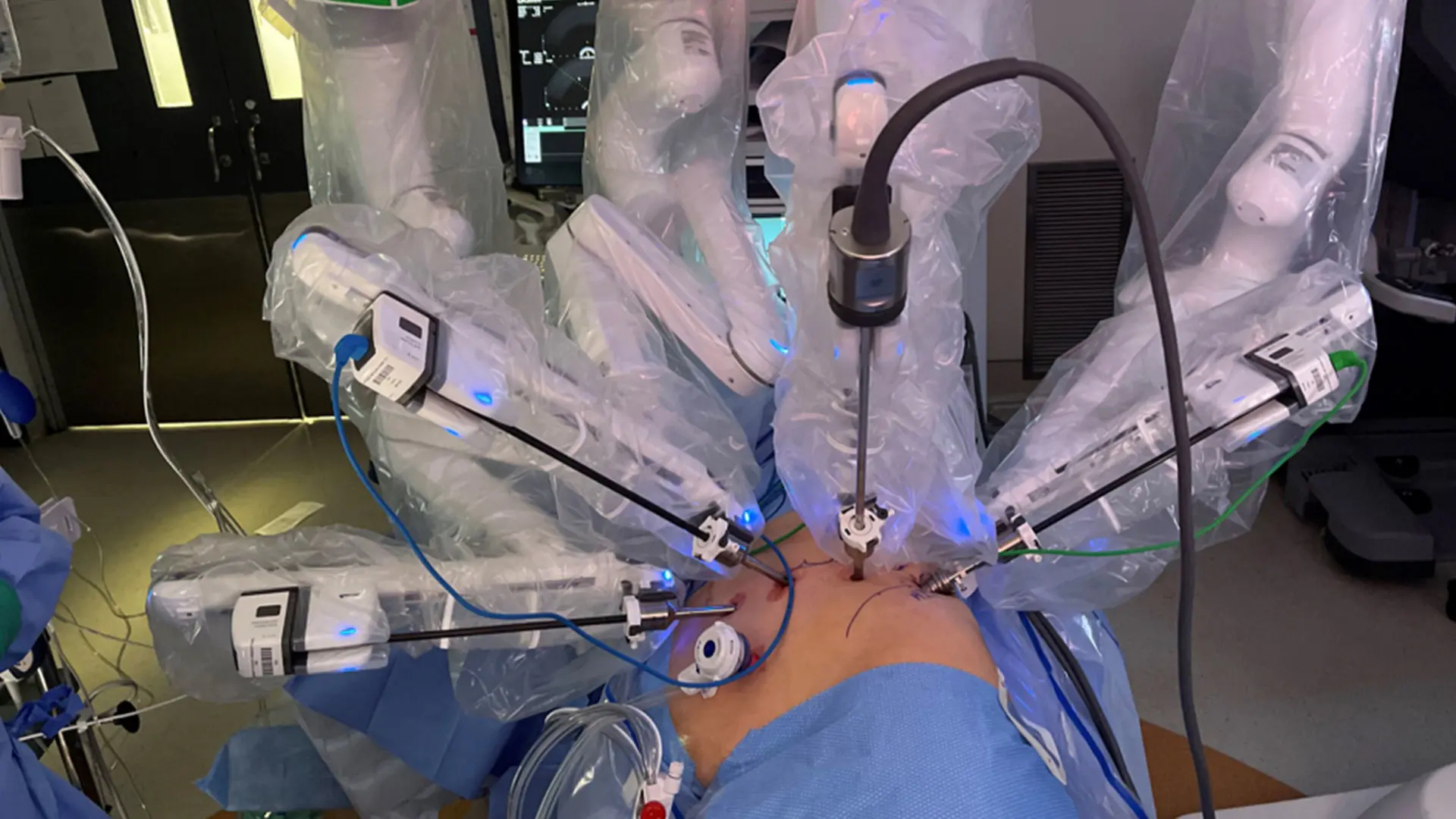 Photo of surgical robotic system in place